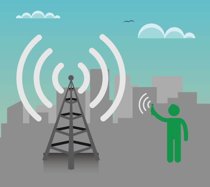 Mobilna telefonija korišćenjem radio talasa prenosi informacije – govor i podaci transformišu se preko antena u EM talas. Da bismo mogli da telefoniramo gde god se nalazili, neophodno je da talase našeg telefona registruje neka bazna stanica i da telefon u svakom trenutku može da uhvati signal neke od baznih stanica. Zato i postoji mreža baznih stanica koje pokrivaju teritoriju na kojoj se krećemo. Radio talasi brzo slabe dok se kreću kroz prostor i dodatno kad prolaze kroz prepreke. Kada je bazna stanica daleko, telefon prima slab signal ili je van dometa. Kada telefoniramo u pokretu, uređaj razmenjuje podatke sa jednom ili više baznih stanica. Signal jedne bazne stanice u jednom trenutku postaje previše slab, pa telefon prelazi na komunikaciju sa drugom baznom stanicom čiji je signal bolji. Na taj način razgovor se ne prekida, dok telefon neprimetno „prelazi“ sa jedne stanice na drugu.
